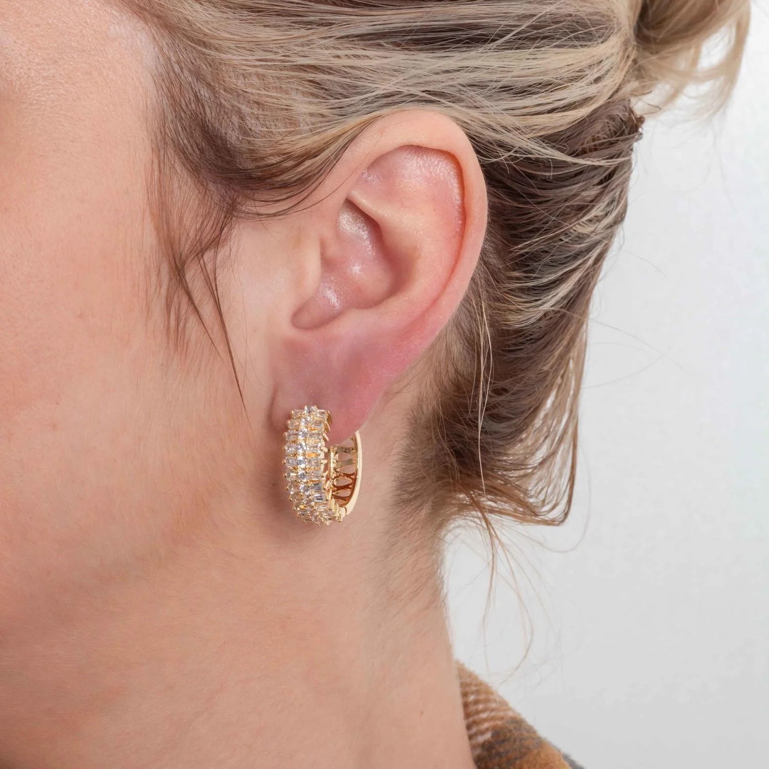 Este lindo BRINCO ARGOLA ARTICULADA CRAVEJADA DE ZIRCÔNIZA CRISTAIS, banhados a ouro 18K, hipoalergênicos e com garantia vitalícia. Essa é a opção perfeita pra quem gosta de estar sempre elegante e dentro da moda. Versátil e muito linda, essa joia promete te fazer arrasar ainda mais no seu dia a dia.
